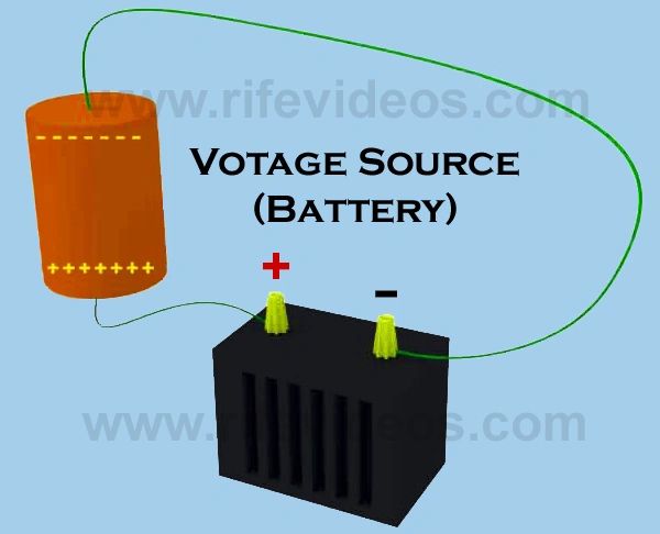 In their description of the Crystal filled hand-cylinders they mentioned that “the charge distribution matrix within the quartz crystals and minerals is symmetric and the net electrical potential is zero." This statement is correct and "piezoelectric" crystals are always in a neutral state or do not produce any voltage and current until mechanical pressure or stress is applied to them. The applied pressure then distorts the crystals creating a positive voltage on one side of the crystal and a negative voltage on the other side of the crystal. This applied pressure makes them work like a battery, as shown below, which has a positive and a negative.
